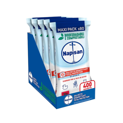 Napisan – Salviette Disinfettanti Total Protection – Confezione da 5 Pacchi x 80 Salviette Disinfettanti Multisuperfici